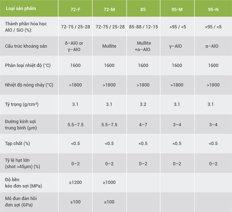 Không chứa xỉ: Sợi alumina gần như không có bụi thủy tinh, giúp tăng độ bền, giảm suy hao tính cách nhiệt và chống cháy tốt hơn.