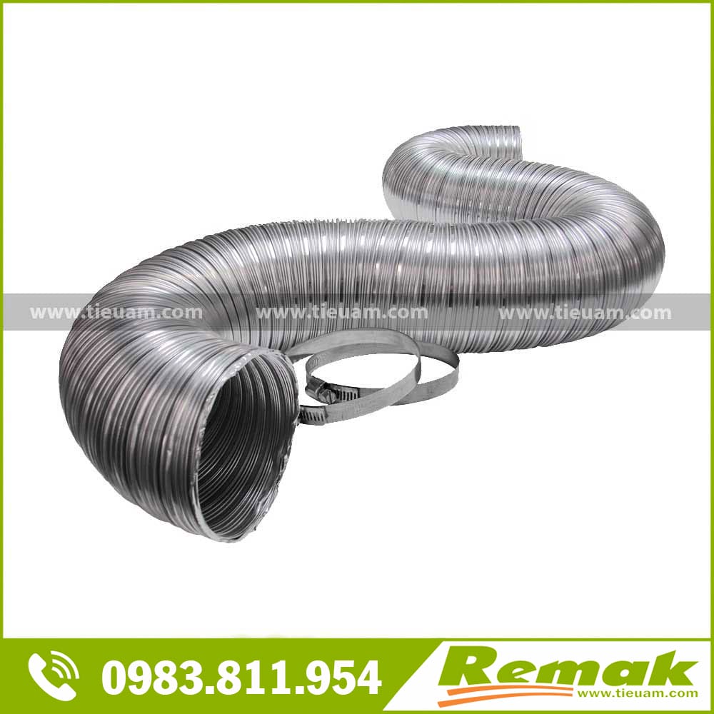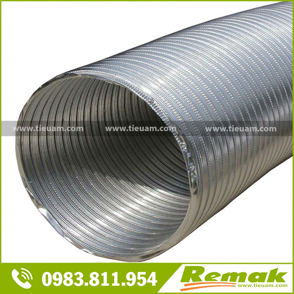 Ống nhôm nhún Remak chống cháy, chịu nhiệt cao, đàn hồi tốt, có thể kéo dãn, uốn cong hay gấp khúc dễ dàng. Sản phẩm được dùng phổ biến trong thi công hệ thống điều hòa không khí, hệ thống quạt hút khói, hút khí của nhà bếp, nhà hàng lẩu nướng, khách sạn, nhà tắm, …